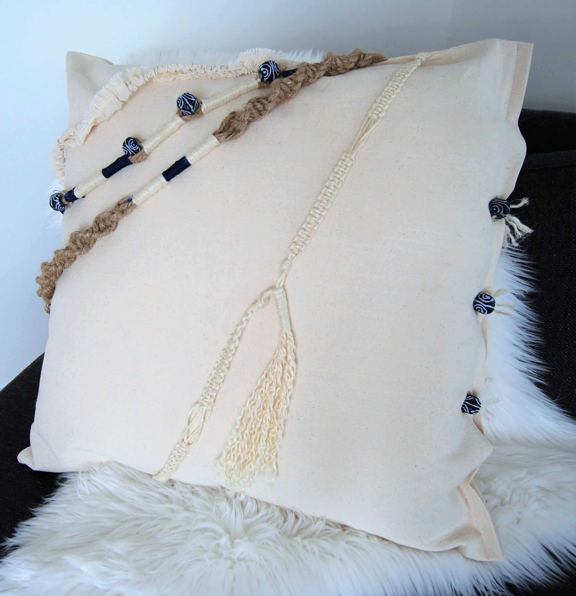 natural and black cotton cord with natural jute wrap