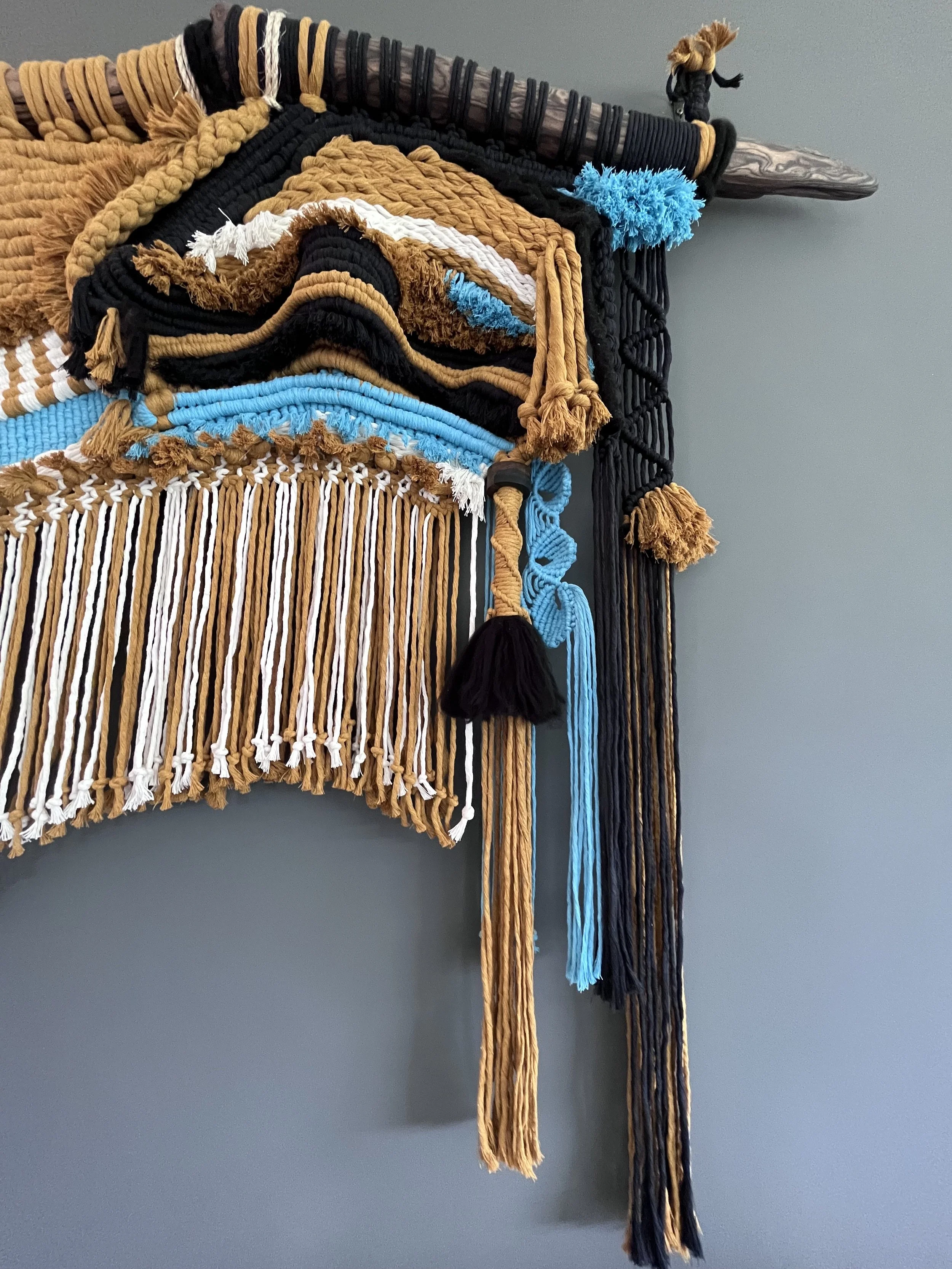 heavy sisal, natural and dip dyed cotton cord; fine jute wrap,